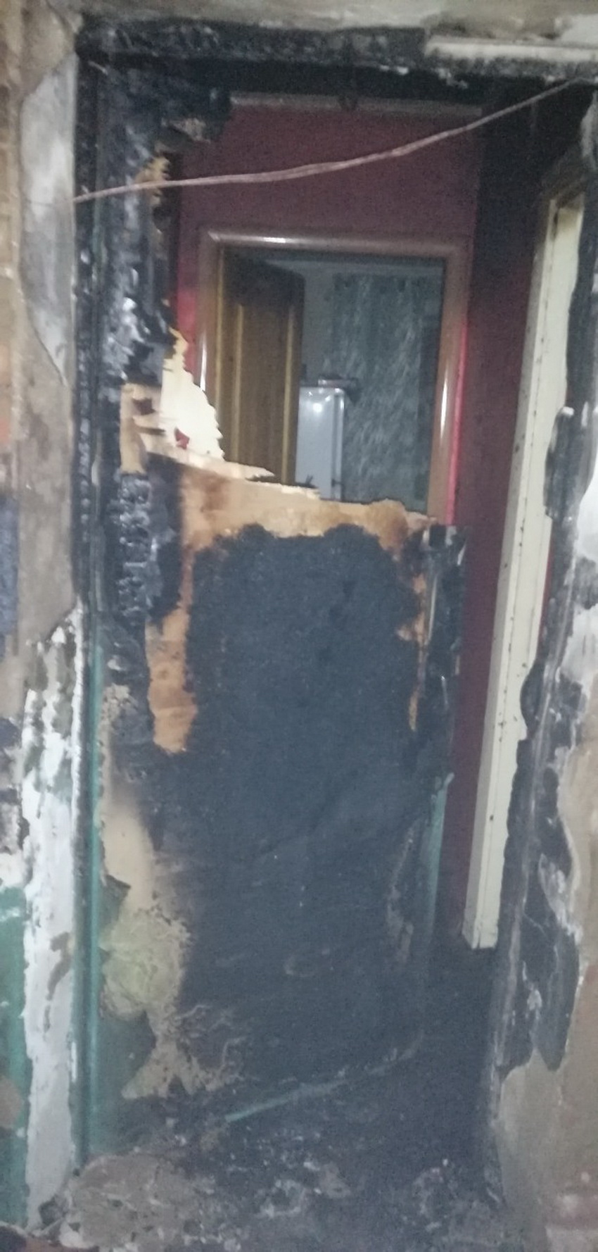 Вогнем знищено та пошкоджено вхідні двері кількох квартир, частину домашніх речей та меблів. Бійцям ДСНС вдалося запобігти загибелі та травмуванню людей, а також поширенню вогню на інші квартири.