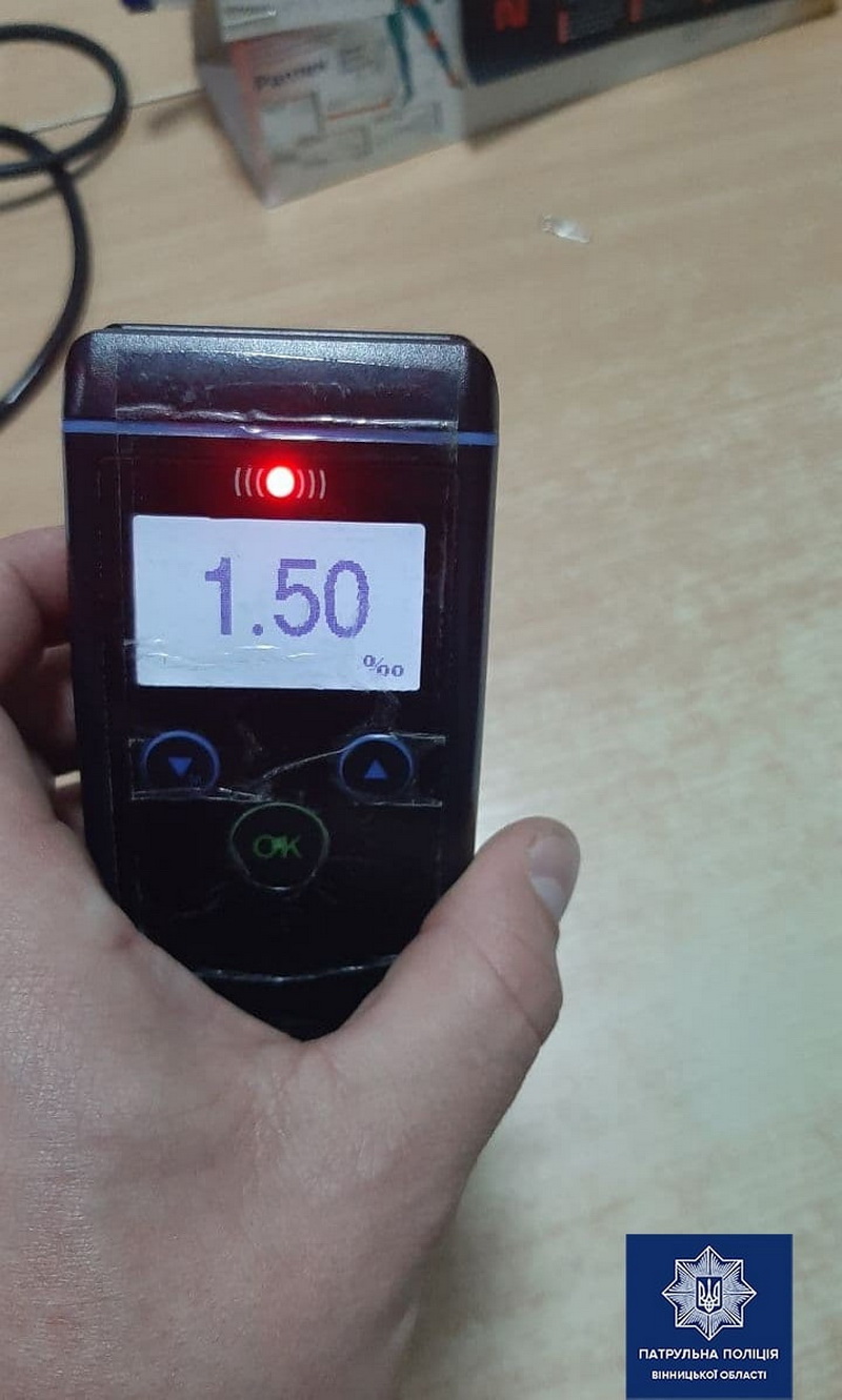 Під час спілкування патрульні помітили в нього ознаки алкогольного сп'яніння. Чоловік погодився пройти перевірку на алкотестері в медичному закладі. Результат виявився позитивним — 1,50 проміле, а це у 7,5 разів перевищує допустиму норму.