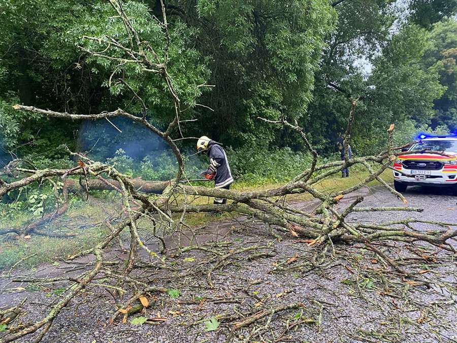 12 серпня, внаслідок сильних поривів вітру та грози на Вінниччині, рятувальники прибирали повалені на дороги дерева.