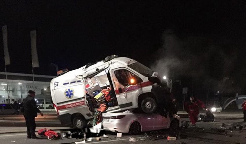 В коментарі активісту Віталію Павловському водій легковика розповів, що їхав по дорозі, спинився на червоне світло, в цей час на них влетіла «швидка».