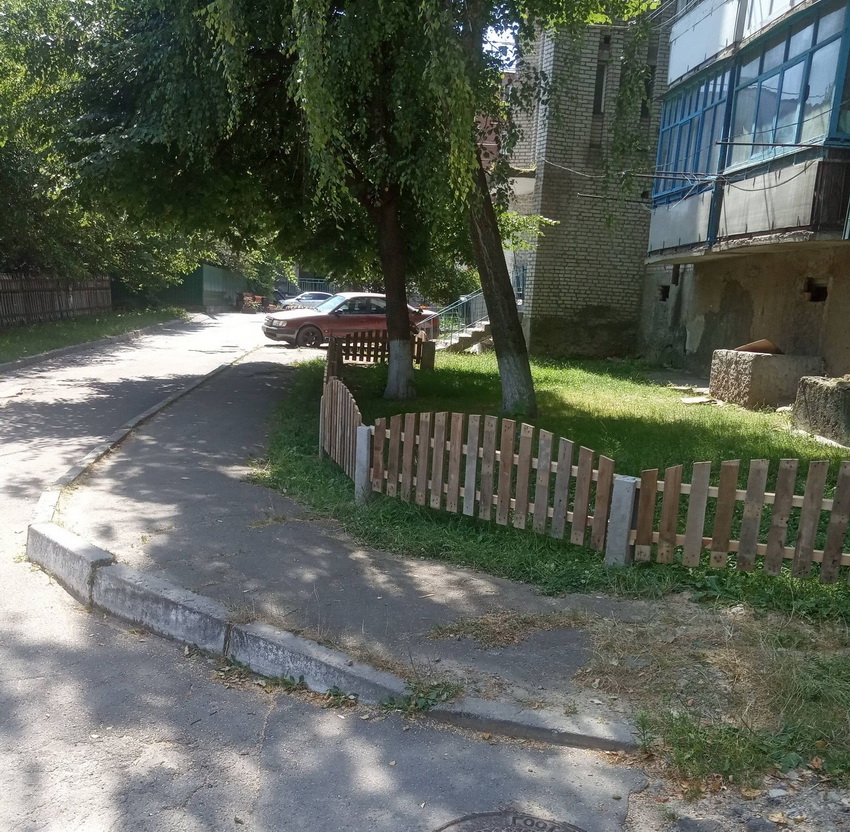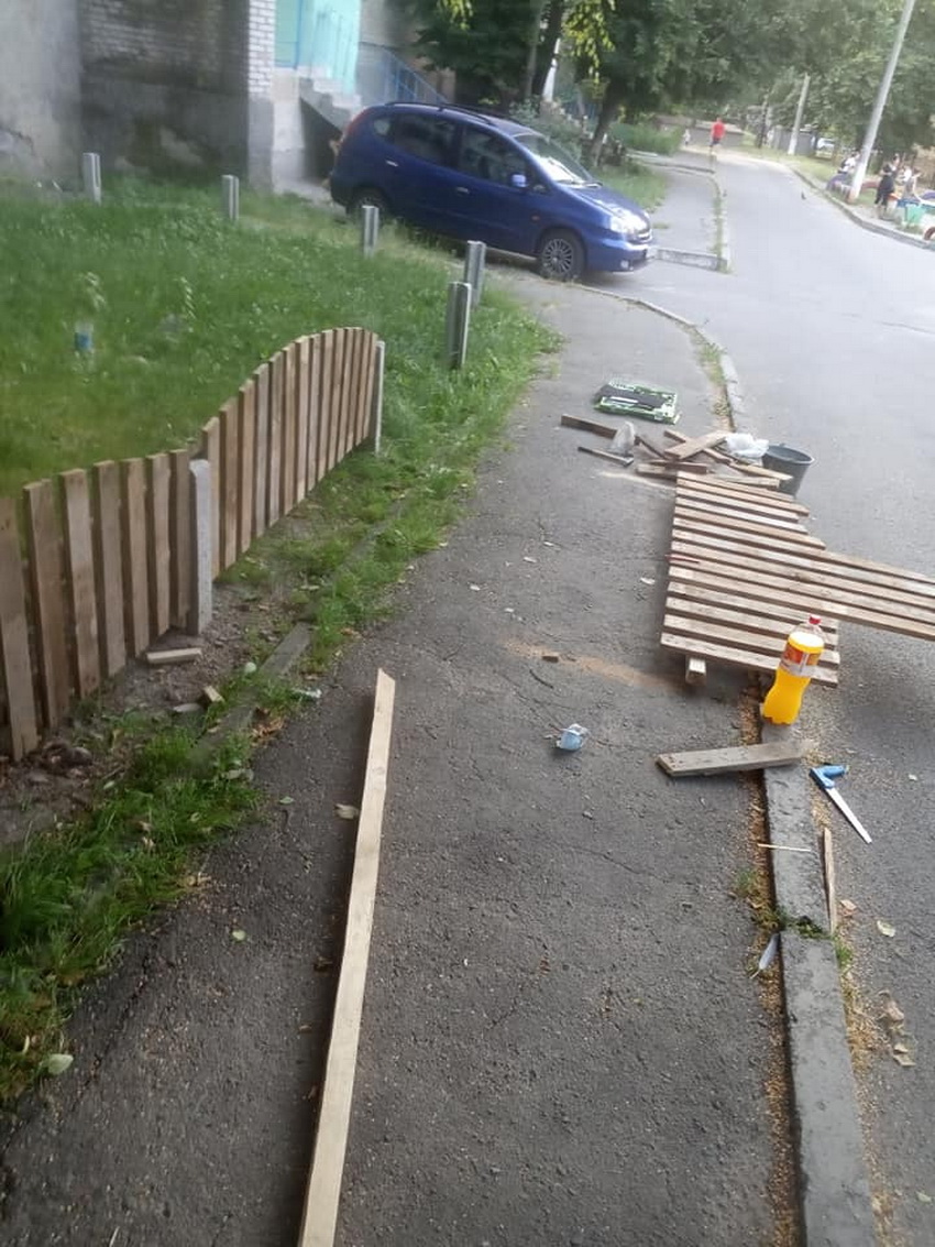 «Підрахували, якщо замовити декоративний парканчик з бетону, ці 20 метрів нам обійдуться у 5 тисяч гривень. Для мешканців одного під’їзду це забагато. Тому вирішили шукати альтернативний варіант. І я згадав, що на роботі, де працюю, є нікому непотрібні піддони, які залишаються після вивантаження. Вони та стали гарним матеріалом для облаштування паркану. Аби його змайструвати, з кількома ініціативними мешканцями об’єдналися. Я привіз з десяток піддонів. Кошти були витрачені лише на придбання дерев’яних брусків, які є опорою конструкції», - розповідає нам Ігор Самборський, місцевий житель та старший по будинку.