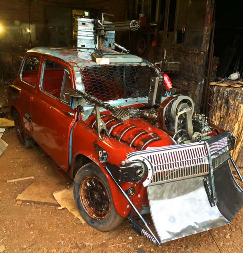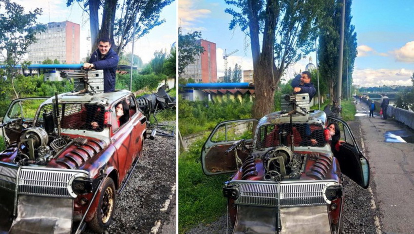«Цей «Запорожець» мені продали за ціною металобрухту. Стиль автомобіля – постапокаліптика. Із середини вийняли всі комплектуючі. Крісло залишилося тільки для водія. Для пасажирів поставили спеціальні лавки, щоб і діти і доросли могли залізти і зробити фотки.