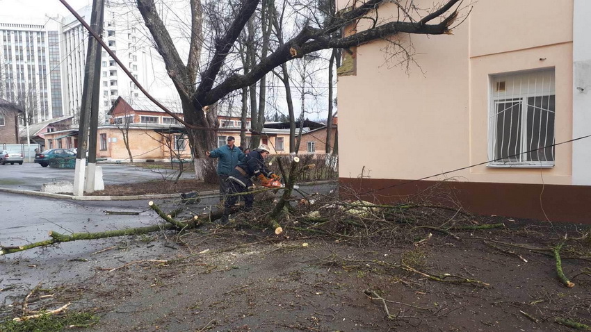 24 лютого о 10:09 до Служби порятунку «101» надійшло повідомлення про те, що у Вінниці внаслідок сильного пориву вітру, на один з корпусів обласної лікарні ім. Миколи Пирогова впало дерево.