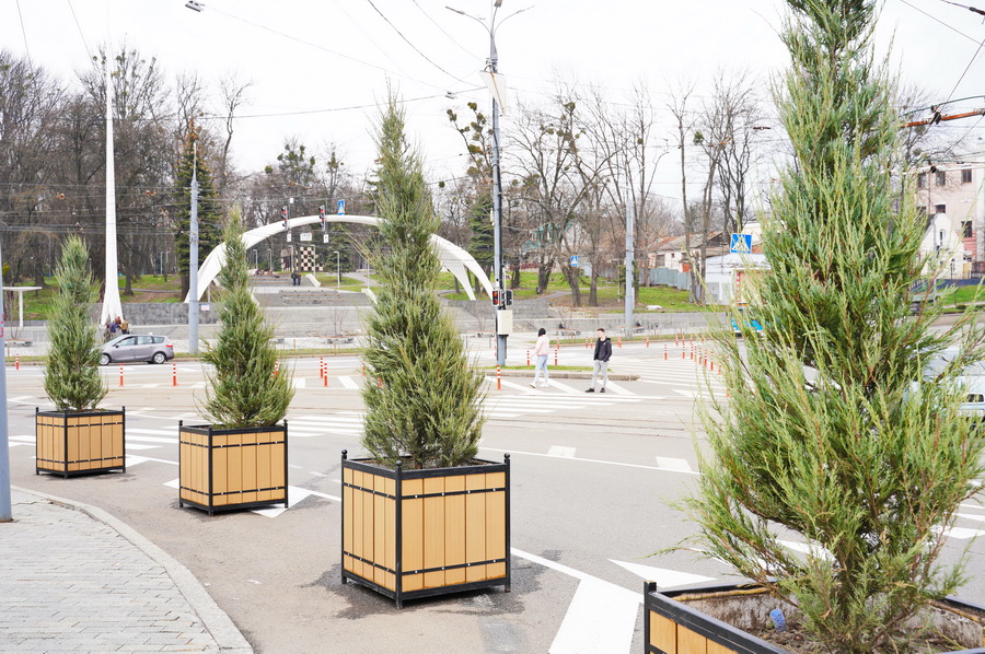 У Вінниці на оновленій площі Гагаріна висадили 25 кущів ялівцю сорту «Блю Арроу». Рослини посадили в клумби у вигляді тумб.