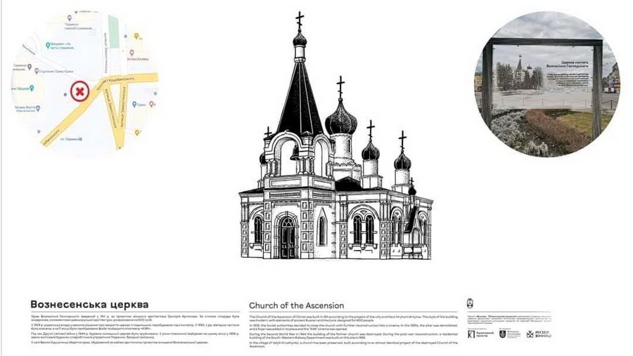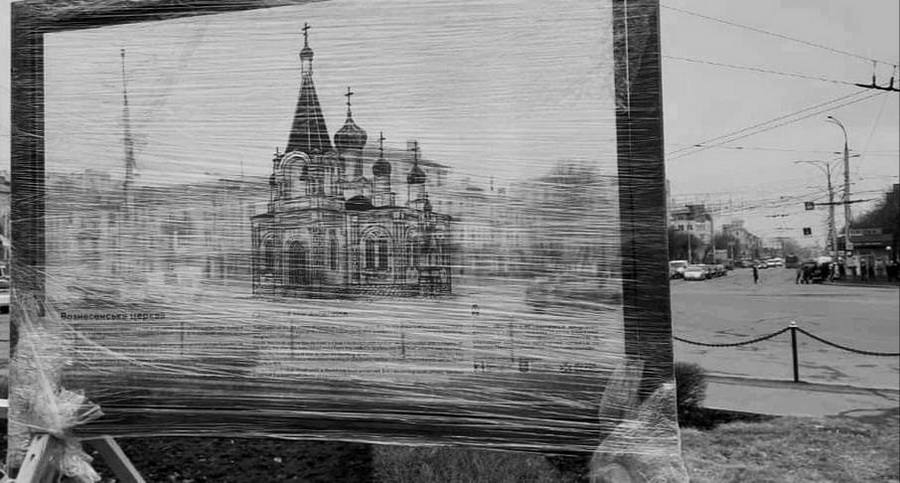 Сьогодні на площі Перемоги встановили прозорий стенд з контурами будівлі Вознесенської церкви, який дозволить уявити, як виглядала місцина у минулому», – йдеться в дописі.