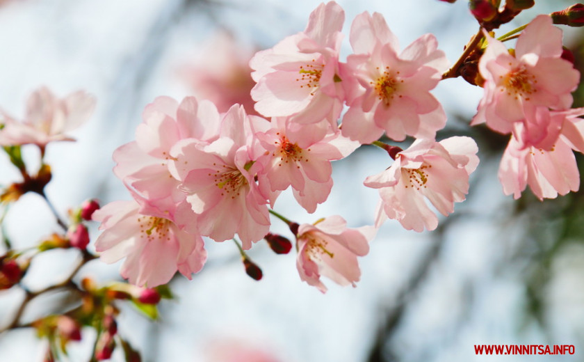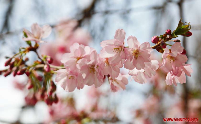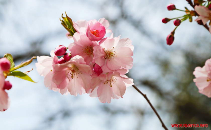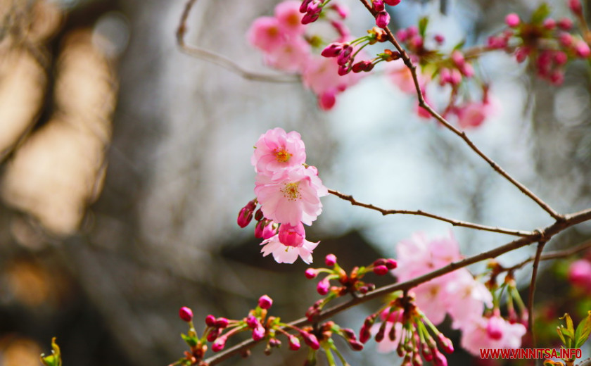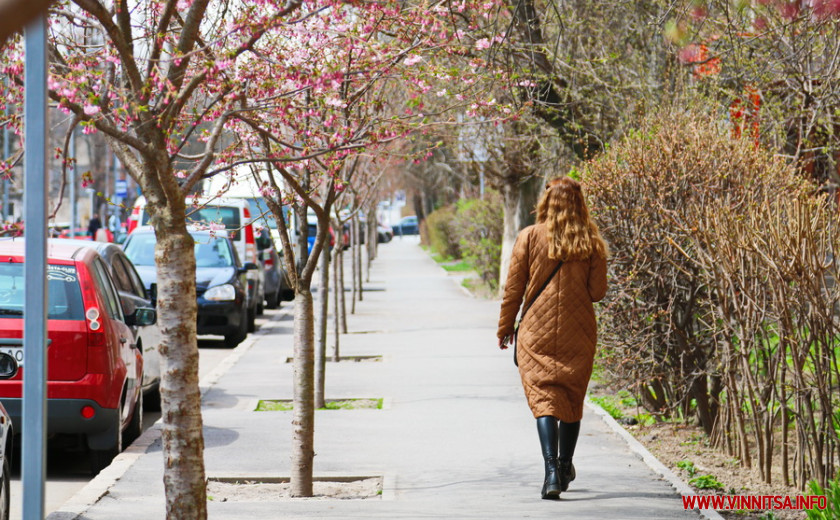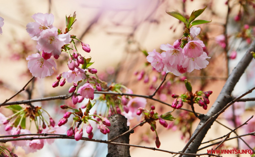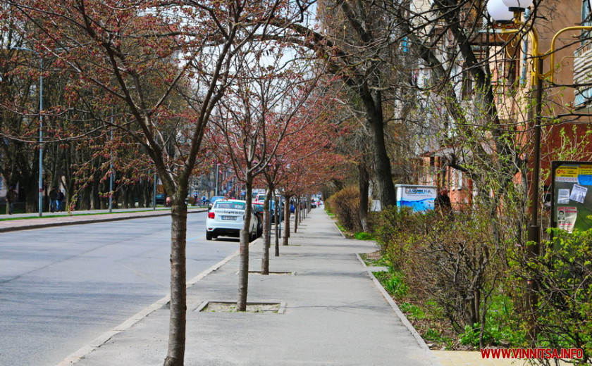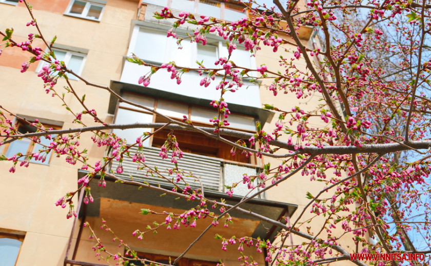 Поки ще на деревах більше пуп’янків, ніж квітів. Але це не стає перепоною для вінничан, які збираються під одним-двома деревами і фотографують, як ніжно-рожеві квіти виблискують на сонечку.