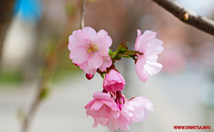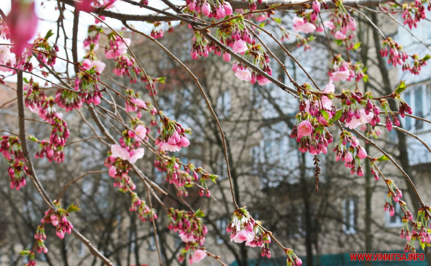 В мікрорайоні Вишенька, по вулиці Порика почала квітнути сакура. Якщо минулого року вона цвіла на початку квітня, то цього року, через затяжні похолодання, сакура розпускається лише зараз. Повільно, але уже милує око.