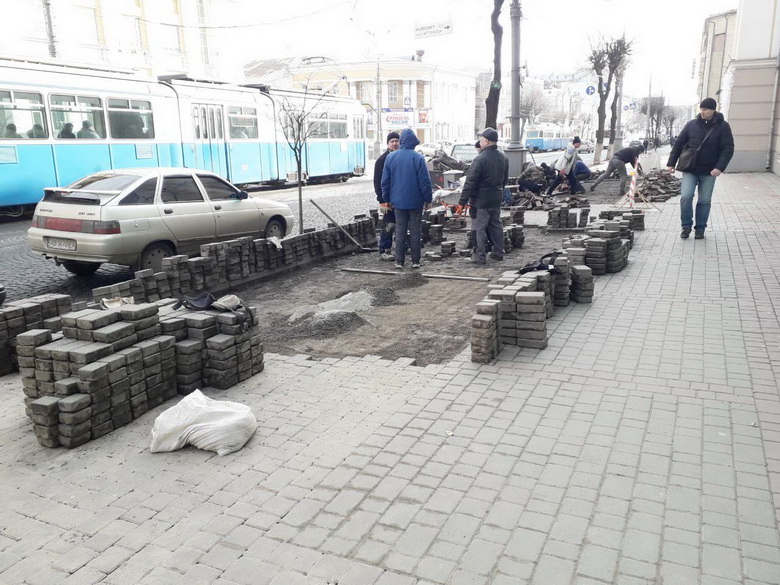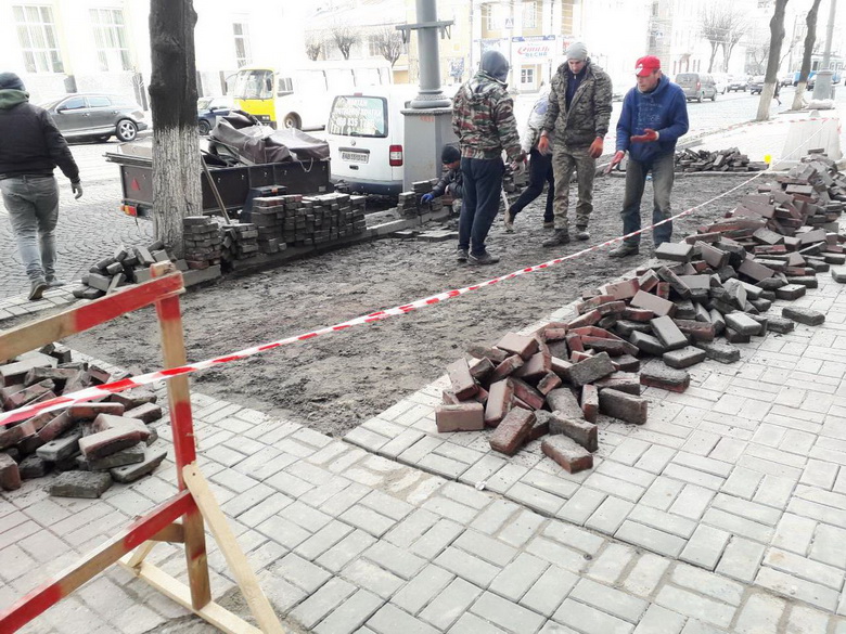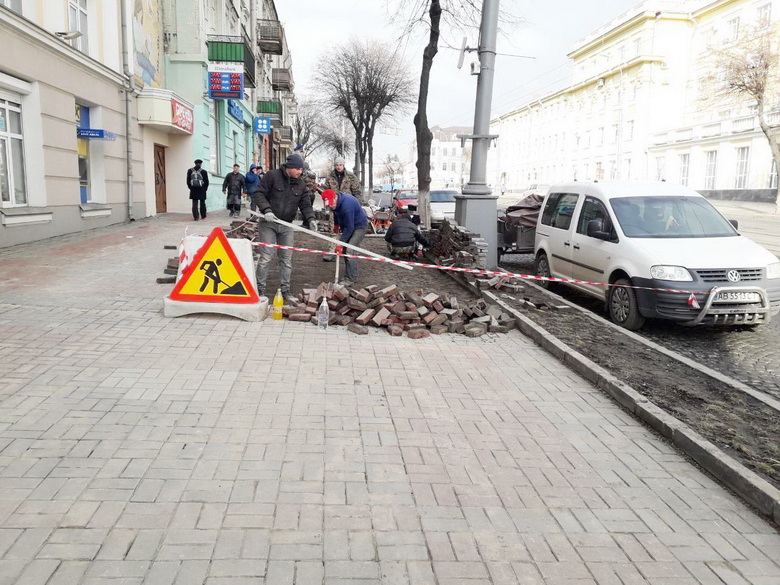 З початку весни у центрі Вінниці почали перестеляти плитку на пішохідній частині. 6 березня робітники «зірвали» ділянку тротуару біля обласної бібліотеки імені Тімірязєва. Плитку демонтували. Територію, де проводять роботи, обгородити червоною стрічкою.