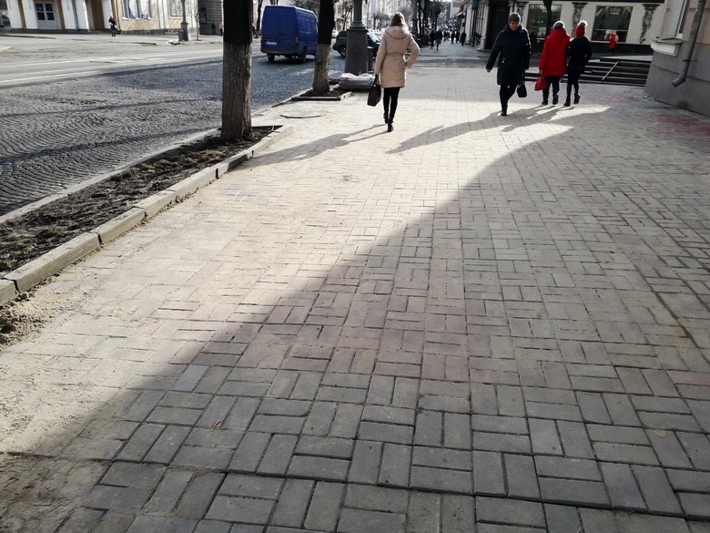 Зазначимо, що взимку саме ця частина тротуару викликала чимало нарікань у пішоходів – плитка вибивалася з місця, утворюючи ями, а саме покриття стало «хвилями».