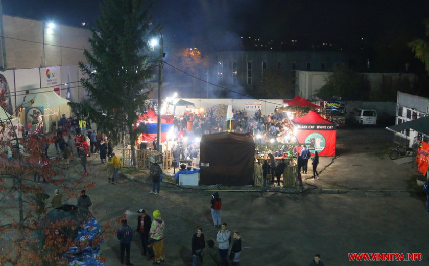 У дворі – металеві бочки з вогнем і кілька «точок», де можна придбати гарячі напої, алкоголь чи фаст-фуд.