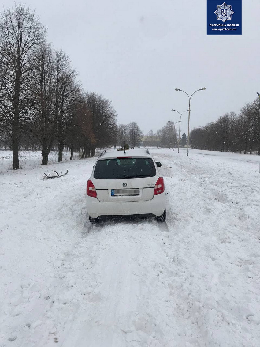 14 лютого неподалік аеропорту «Вінниця» патрульні відкопали автомобіль Skoda Fabia, який застряг в снігових заметах.