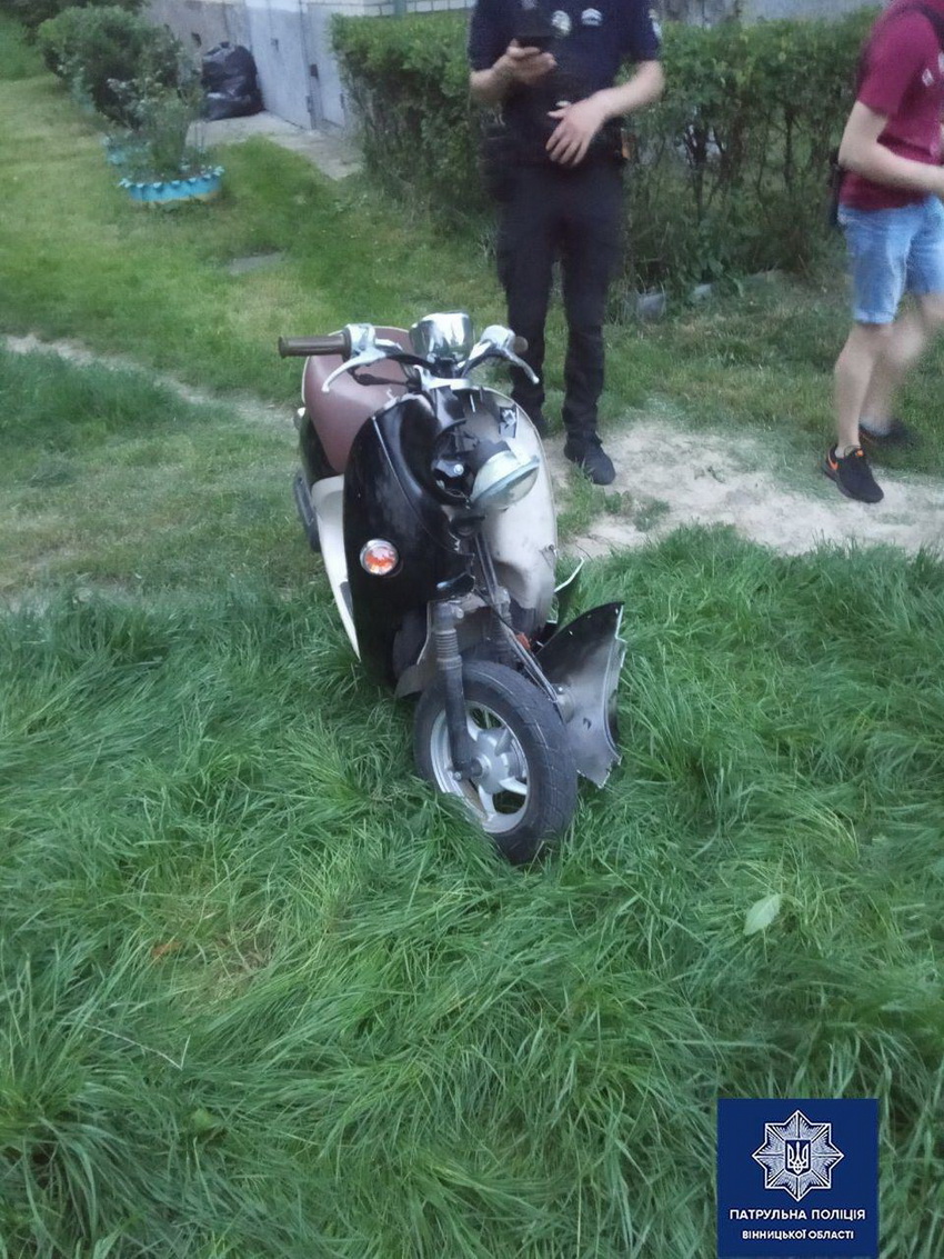 На 16-річного кермувальника Yamaha Vino інспектори склали ряд адмінматеріалів: за керування транспортним засобом у стані сп'яніння, вчинення ДТП, залишення місця автопригоди та за те, що керував мопедом, не маючи на те права.
