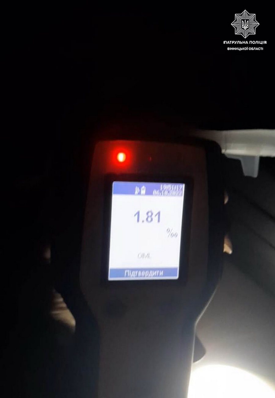 Йому запропонували пройти перевірку на алкотестері. Спецприлад Drager показав 1,81 проміле алкоголю в організмі кермувальника.