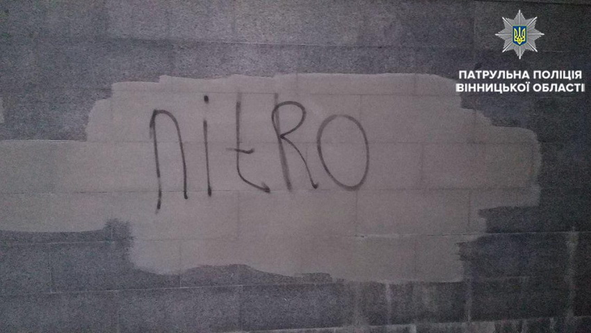 Оперативно прибувши на місце події, патрульні виявили там 19-річного хлопця, який тримав у руках балончик. Він уже встиг розмалювати стіну.