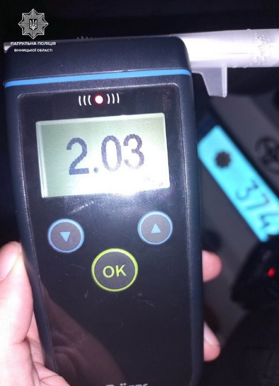 Йому запропонували пройти перевірку на алкотестері. Спецприлад Drager показав 2,03 проміле алкоголю в організмі кермувальника.