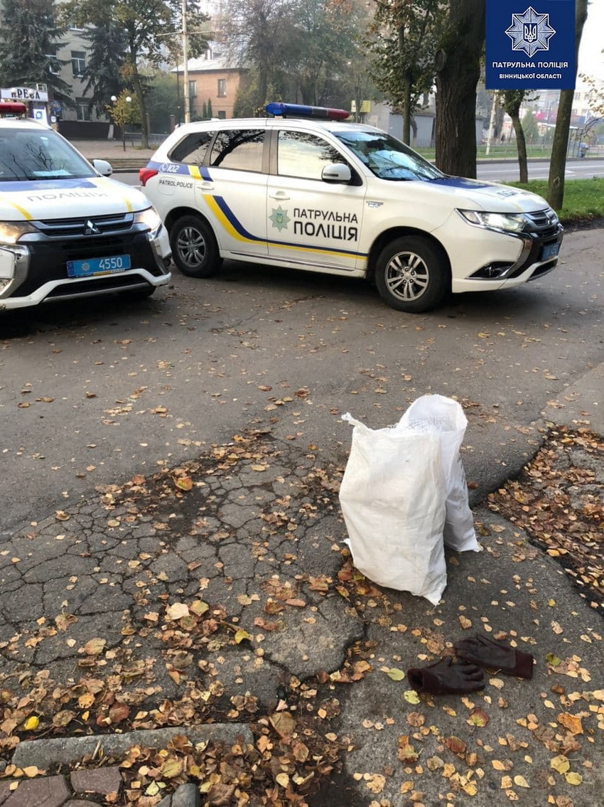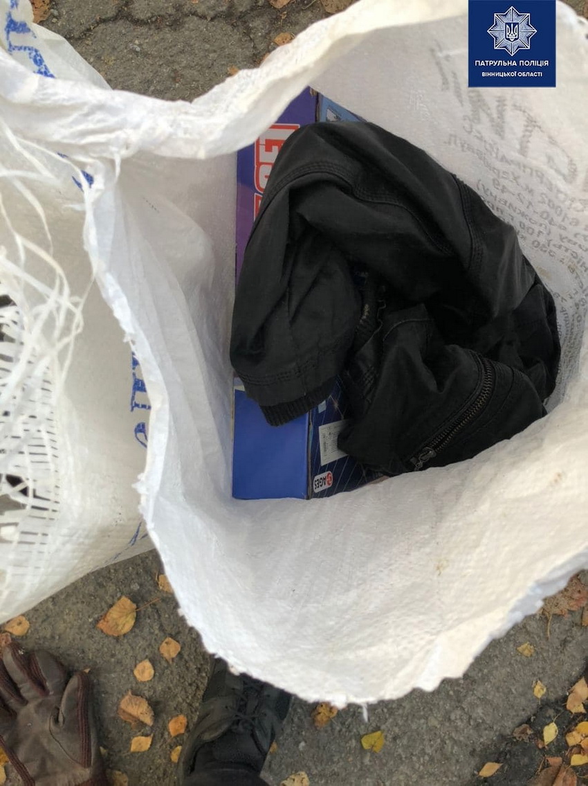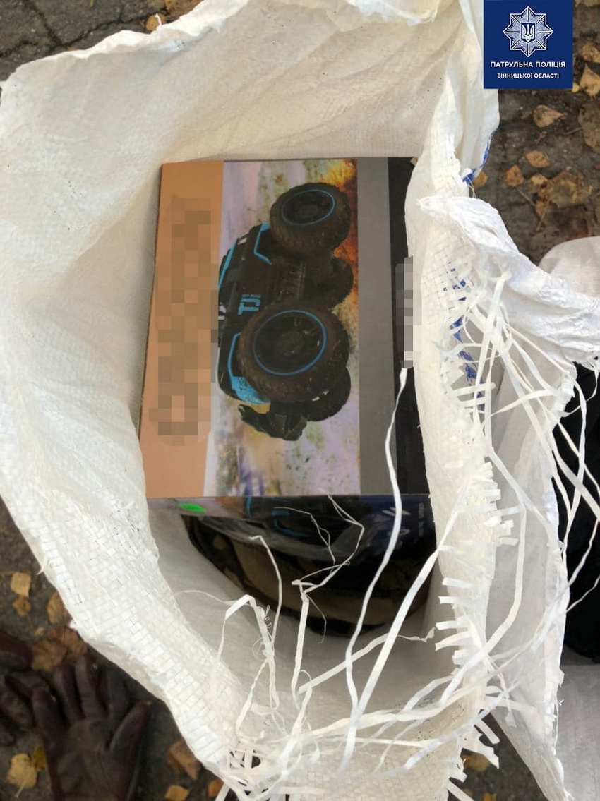 5 листопада вранці на Хмельницькому шосе патрульні помітили підозрілого громадянина з двома мішками в руках. Побачивши поліцейських, чоловік одразу змінив напрямок руху та почав прискорювати крок. Коли 43-річного вінничанина зупинили, в нього знайшли близько 6 тисяч гривень різними купюрами, а в мішках – дитячі іграшки.