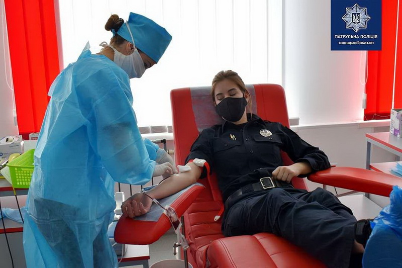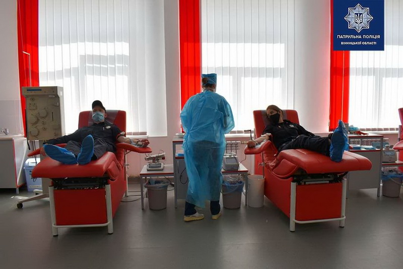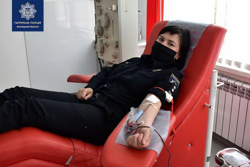 30 квітня у Вінниці 12 співробітників патрульної поліції відвідали обласну станцію переливання крові, де здали приблизно 6 літрів донорського матеріалу для людей, які потребують регулярного переливання.