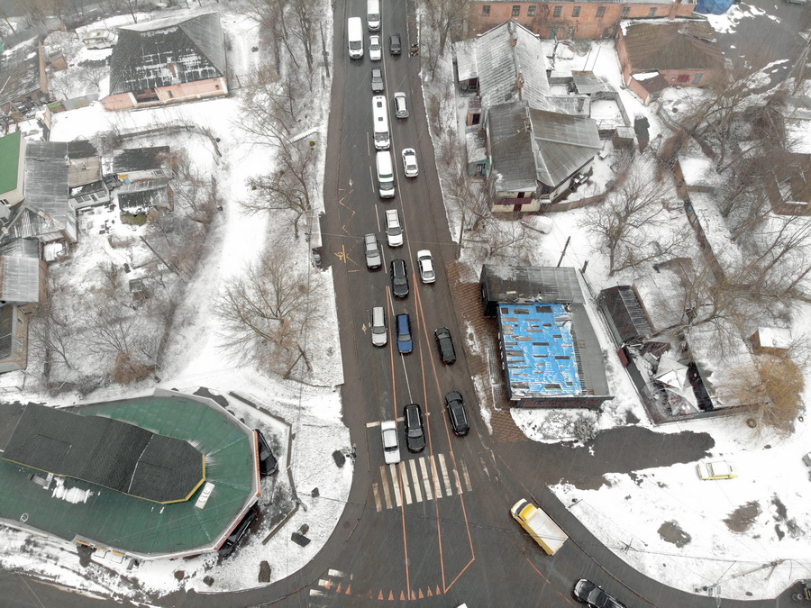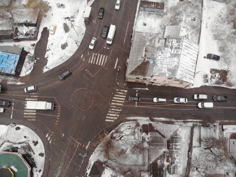 12 березня працівники КП «СМЕД ОДР» нанесли на перехресті розмітку. «Це тимчасова розмітка, яка згідно стандарту ДСТУ наноситься помаранчевою фарбою. Нею виділено саме коло, яке передбачається радіусом в 4 метри, а також позначені смуги для автотранспорту, – розповідає т.в.о директора підприємства «СМЕД ОДР» Сергій Чернов. – Коло також буде огороджено пластиковими дорожніми блоками. Уже встановлені дорожні знаки 4.10 (рух по колу), які відкриють в суботу, 13 березня, коли почнеться тестовий режим і буде вимкнуто світлофорне регулювання».