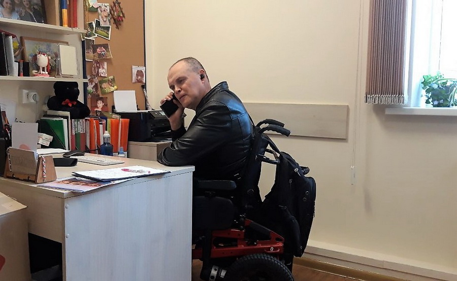 Чоловік сам пересувається на візку і добре знає про потреби людей з порушенням опорно-рухового апарату.