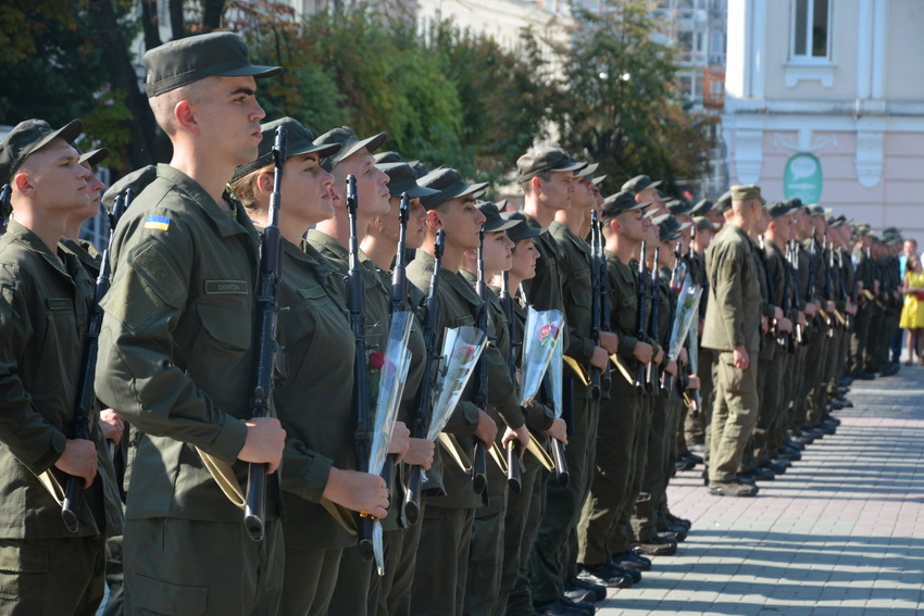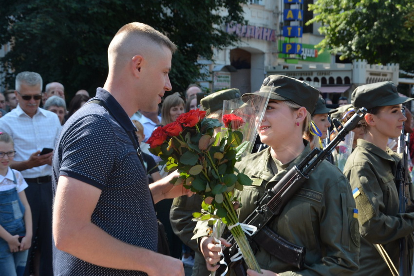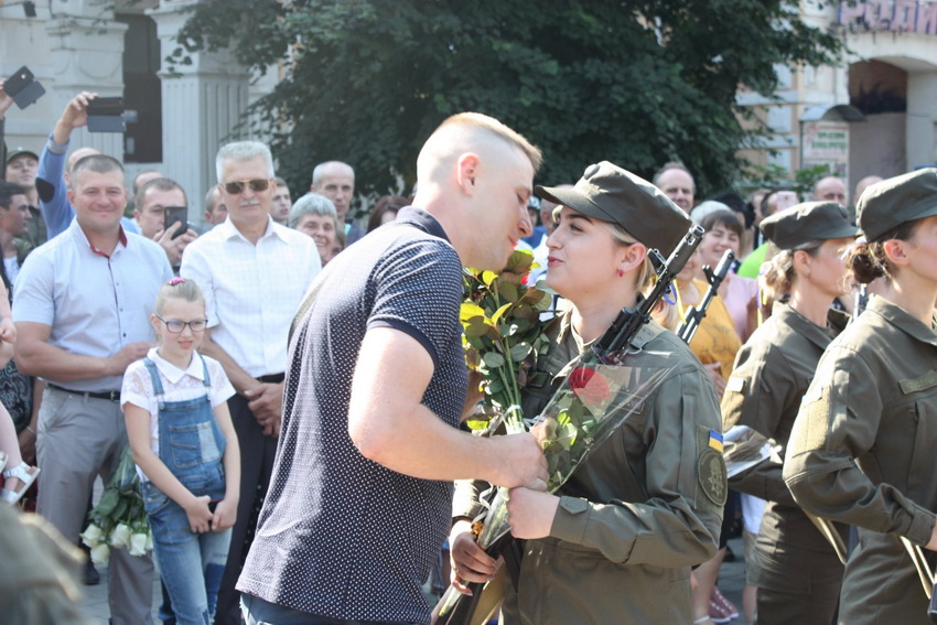 «Вона присягнула на вірність українському народу, а він присягнув їй у коханні. У Вінниці на центральній площі під час урочистостей хлопець покликав заміж кохану дівчину у день її військової присяги», - повідомляє прес-служба військової частини.