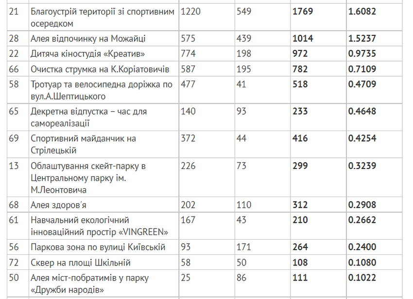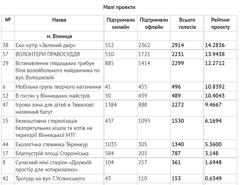 «Загалом, цьогоріч, участь у голосуванні взяли 29475 жителів Вінницької міської територіальної громади: 15530 (53%) осіб в електронному варіанті, 13945 (47%) - в офлайн режимі, у тому числі 1197 осіб проголосували за допомогою «Муніципальної картки вінничанина». Слід зазначити, що кожен житель міг проголосувати за 4 різних проєкти - 2 великих і 2 малих», - зазначено в повідомленні.