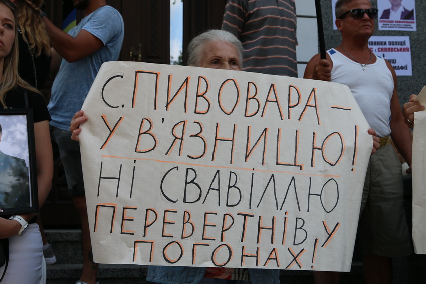 Учасники акції тримали в руках фото загиблого, а також плакати з надписами «С.Пивоварова у в’язницю. Ні, свавіллю перевертнів у погонах», «Поліція нас вбиває»…