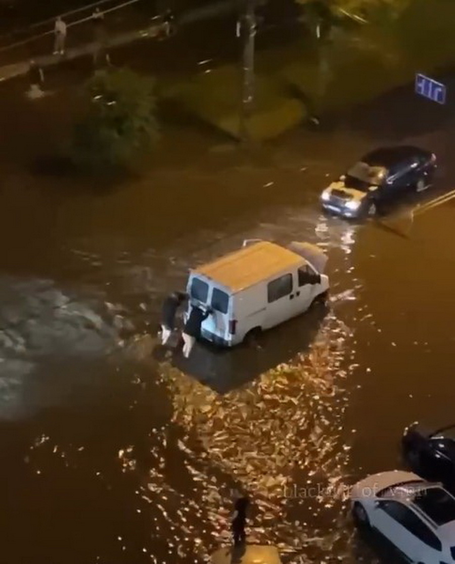 Перехожі по коліна у воді йшли вулицею, а деякі водії просто виходили з авто і тягнули його.