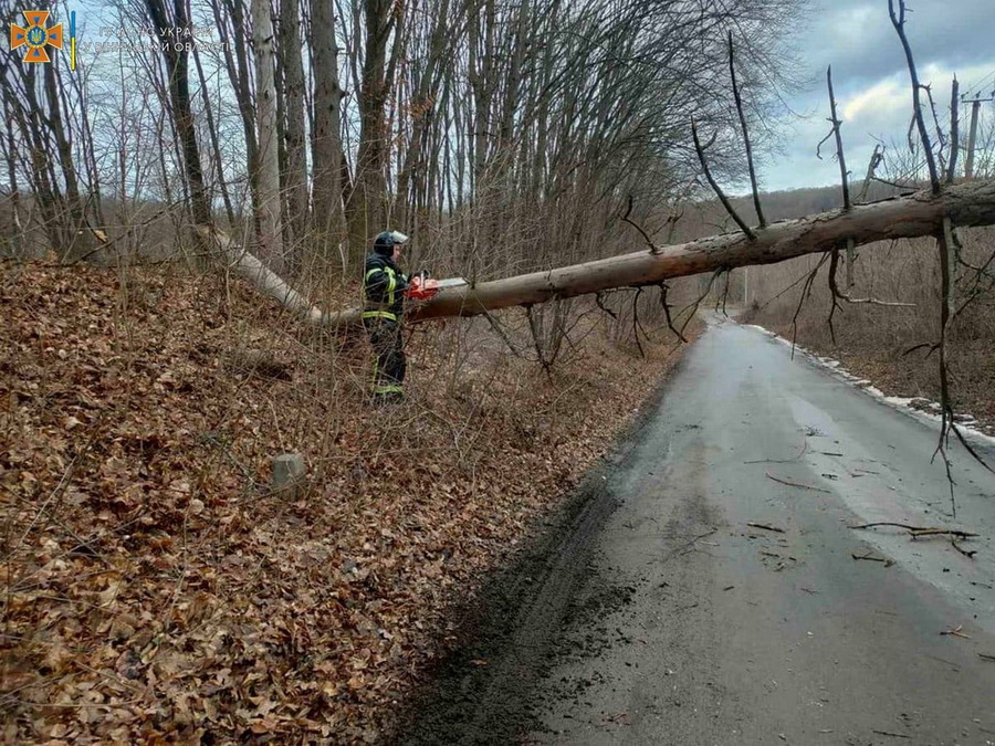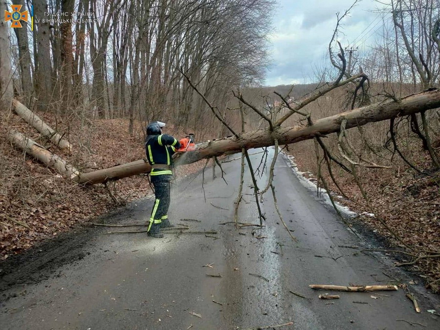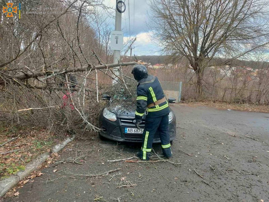 У Вінниці, 3 січня, від вітру впало дерево на автомобіль «Форд» та проїжджу частину дороги на вулиці Ботанічній. Звільняти машину та ліквідувати наслідки негоди довелося рятувальникам.