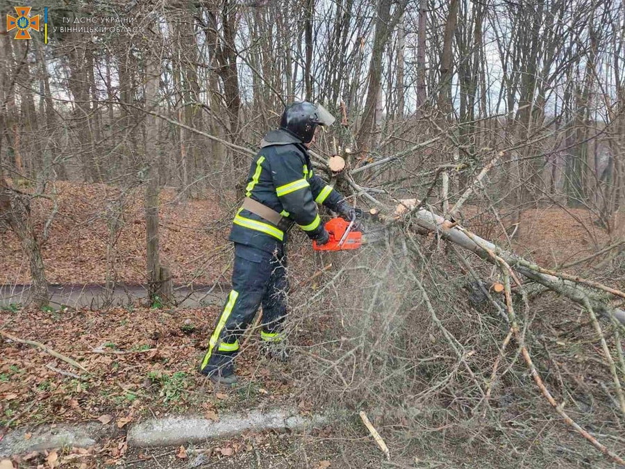 «3 січня о 13:20 до Служби порятунку «101» надійшло повідомлення про те, що на вул. Ботанічній в м. Вінниці, внаслідок сильного пориву вітру, на проїжджу частину дороги та на автомобіль Форд впало дерево. Прибувши до місця події, рятувальники ДПРЧ-4 за допомогою спецобладнання розкрижували стовбур дерева та прибрали гілля», - йдеться у повідомленні.