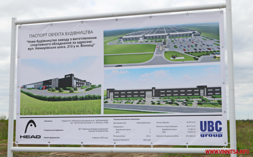 Підприємство HEAD розташовуватиметься на території Індустріального парку, що на Немирівському шосе. Завод спеціалізуватиметься на виробництві продукції для зимових видів спорту, а також для дайвінгу і тенісу. HEAD буде найбільшим заводом з виробництва спортивного спорядження в світі.