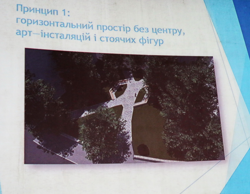 «Ми пропонуємо окреслити те місце, де протікає та річка чи то підкачуванням води до оригіналу, чи то пустити водопровід, але бажано, щоб вода була з оригінального струмка. А також створити арт-об’єктний простір, щоб не було ніяких скульптур, які дуже часто використовують. Аби не було чорнобривців, які будуть щороку пересаджувати і витрачати ресурси. Якщо говорити про озеленення, ми пропонуємо насаджувати злакові культури. Тобто багато річні рослини, які можна посадити і просто за ними доглядати. Ми маємо на меті створити простір, де можна буде усвідомити, кому присвячений сквер», – каже Леонід Марущак, співорганізатор Мистецької резиденції «Над Богом».