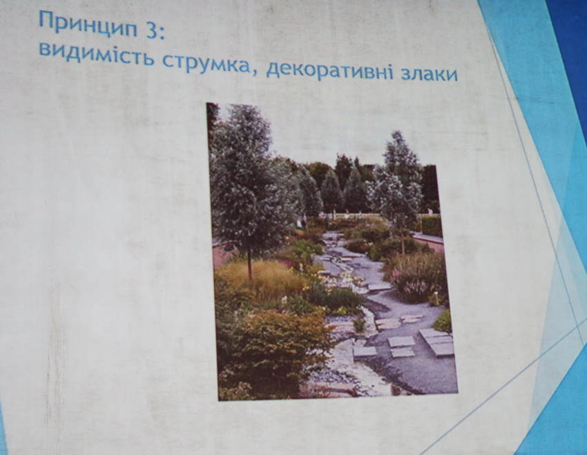 Третій принцип – видимість струмка та декоративні злаки. Цей принцип важливий, оскільки мало випадків, коли «дістають» назовні річку. Якщо вдасться реалізувати цей задум, то Вінниця буде першим містом в Україні, коли «піднімуть» річку.