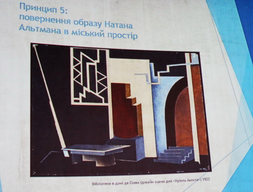 П’ятий принцип – повернення образу Натана Альтмана в міський простір. Планують популяризувати постать Альтмана, а не один із видів його мистецтва.