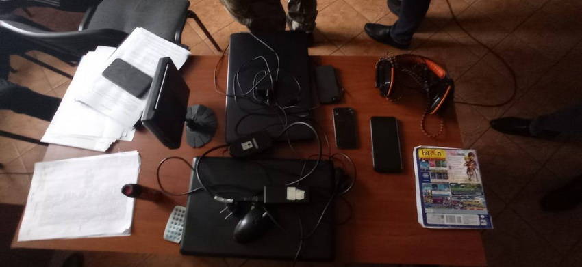 В двох офісних приміщеннях вилучено більше 40 одиниць комп’ютерної техніки та телекомунікаційного обладнання, sim-карти операторів стільникового зв’язку, в тому числі закордонних, покрокові інструкції співробітників «колл-центру», а також інше технічне обладнання та документальні матеріали, що підтверджують злочинну діяльність.