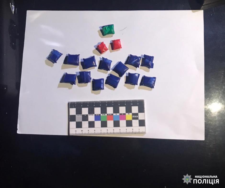 В ході подальшої перевірки прилеглої території поліцейські виявили та вилучили ще 15 згортків з невідомою речовиною, які зловмисник встиг розмістити шляхом встановлення закладок.