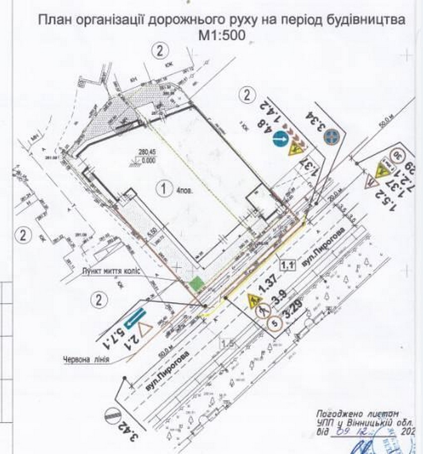 На вулиці Пирогова біля будинку №36 на смузі руху встановили будівельний паркан. Жодного знаку, який би попереджав про зміну організації дорожнього руху, забудовник не встановив, що створює небезпеку для пішоходів. На місце мають приїхати патрульні.