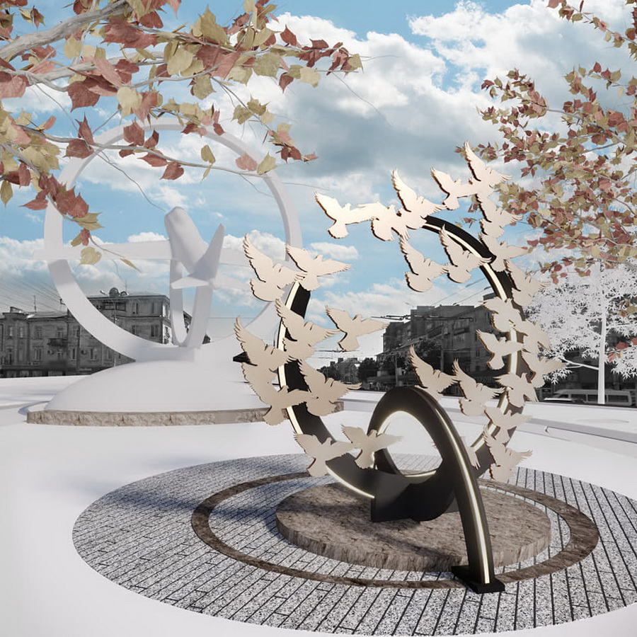 «Ну що , друзі, завдячуючи підтримці Сергій Моргунов , а також дуже талановитої дівчини Natalka Pastukh. Ми отримали фінішний ескіз стели пам’яті про загиблих під час теракту 14.07.2022р.