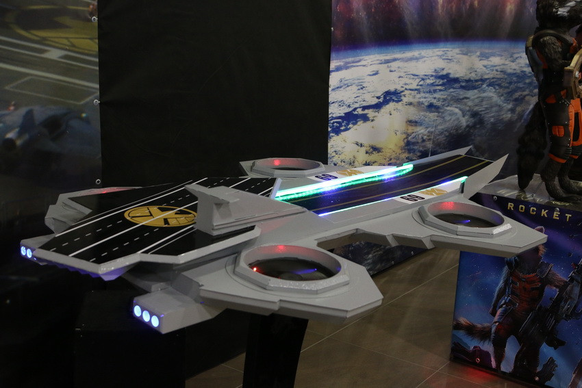 «Біля вартових Галактики стоїть авіаносець «Щ.И.Т.». Це наша перша робота, з нього все і почалося. Зробили десь на початку жовтня. Це була найважча робота, оскільки ми ніколи раніше не працювали з металом. Це був наш старт, і старт був важкий», - розповів журналісту Вінниця.info один з творців виставки Руслан.