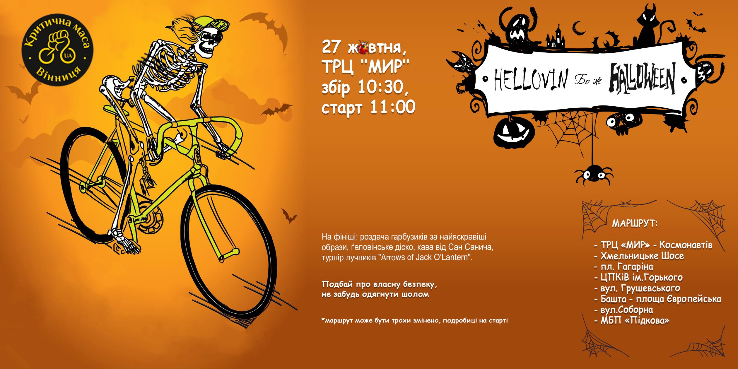 27 жовтня у Вінниці проведуть традиційний найстрашніший велопарад року. Захід влаштовують до свята Halloween, яке відзначають у ніч з 31 жовтня нa 1 листопaдa.