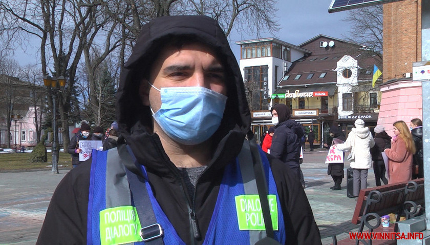 "Ми тут знаходимося для забезпечення порядку під час проведення даного заходу. Так, як до поліції надійшло повідомлення від організаторів про проведення цього заходу. Тому ми й тут. Як і на будь-якій іншій акції, яка проходить у Вінниці", - Костянтин Москалюк, начальник відділу превенції Вінницького районного управління.