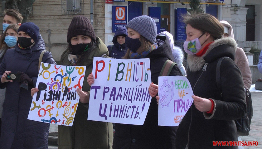 8 березня у Вінниці провели акцію присвячену гендерній рівності. Біля Водонапірної вежі, що у центрі міста, зібрались кілька десятків людей. Організатори цією подією намагалися привернути увагу суті свята, яке сьогодні відзначають. А також нагадати про права, роль жінки у суспільстві та обговорити насильство у родині.