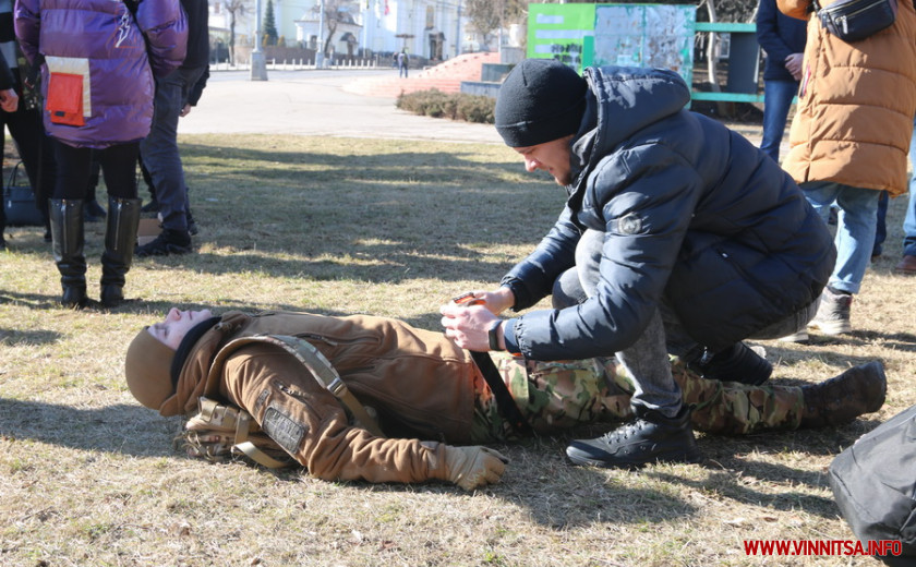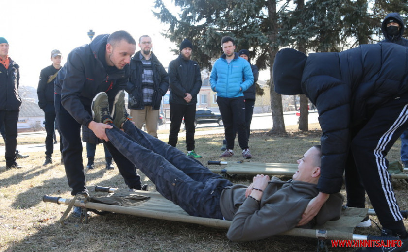 20 лютого у Вінниці провели тренінг з військової підготовки для цивільних громадян. На чотирьох локаціях біля колишнього кінотеатру «Росія» інструктори вчили медицини, стрільби, евакуації пораненого з червоної зони, а також як розбирати та збирати автомат.