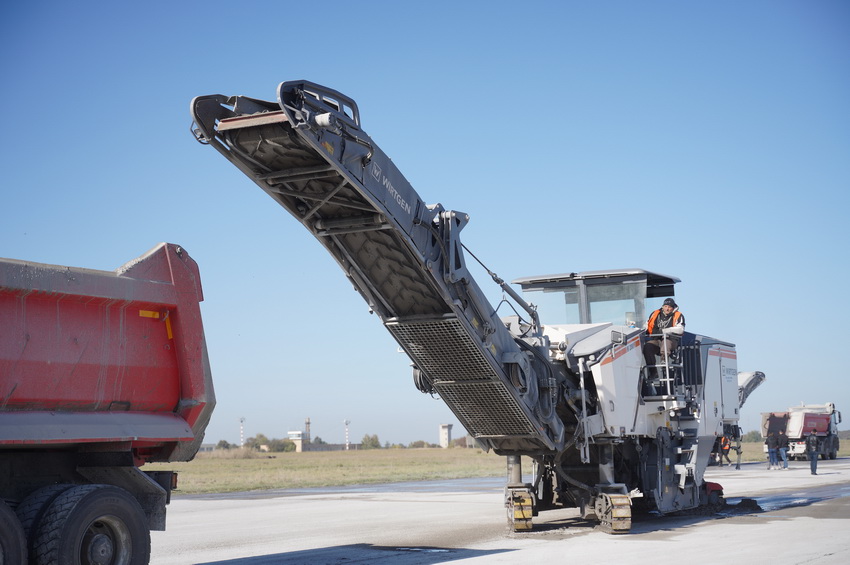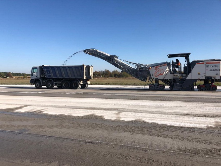 За словами директора аеропорту Володимира Ніценка, на сьогодні виконано фрезерування всього перону, фрезерування 800 метрів злітно-посадкової смуги. Проведено демонтаж аеродромних плит. Після цього встановлять бетонний завод і буде монтуватись бетонний вузол, на місці плит. Проводять роботи по підготовці швів до заповнення бітумом. Військові проводять демонтаж світло-сигнального обладнання. Далі передбачено облаштування визріваючого шару бетону, товщиною 18 сантиметрів. А основний шар бетону буде товщиною 38 сантиметрів.