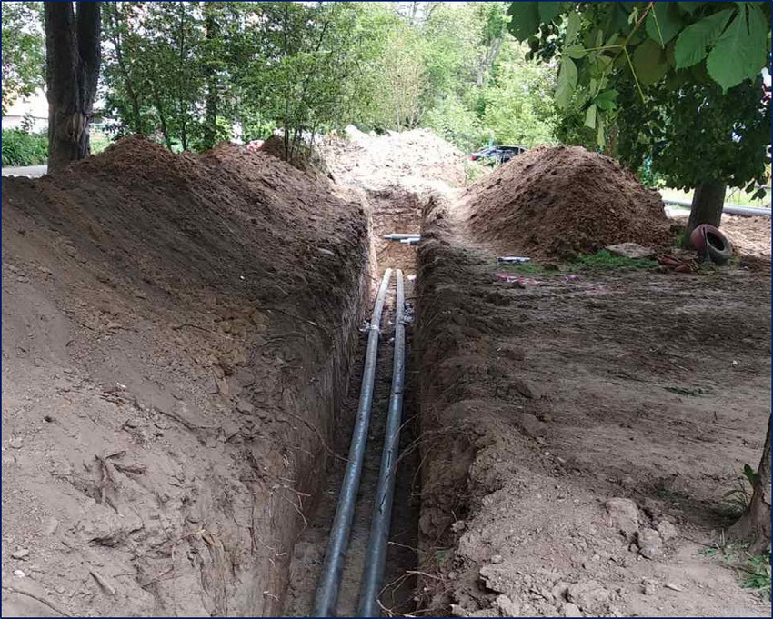 Наразі реконструкція інженерних мереж проводиться на кількох прибудинкових територіях. Замінюють мережі каналізації, теплопостачання на прибудинковій території житлового будинку по просп. Юності, 31.