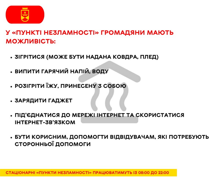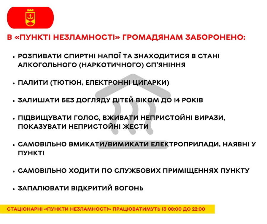 У Вінниці «Пункти незламності» працюватимуть із 08:00 до 22:00.