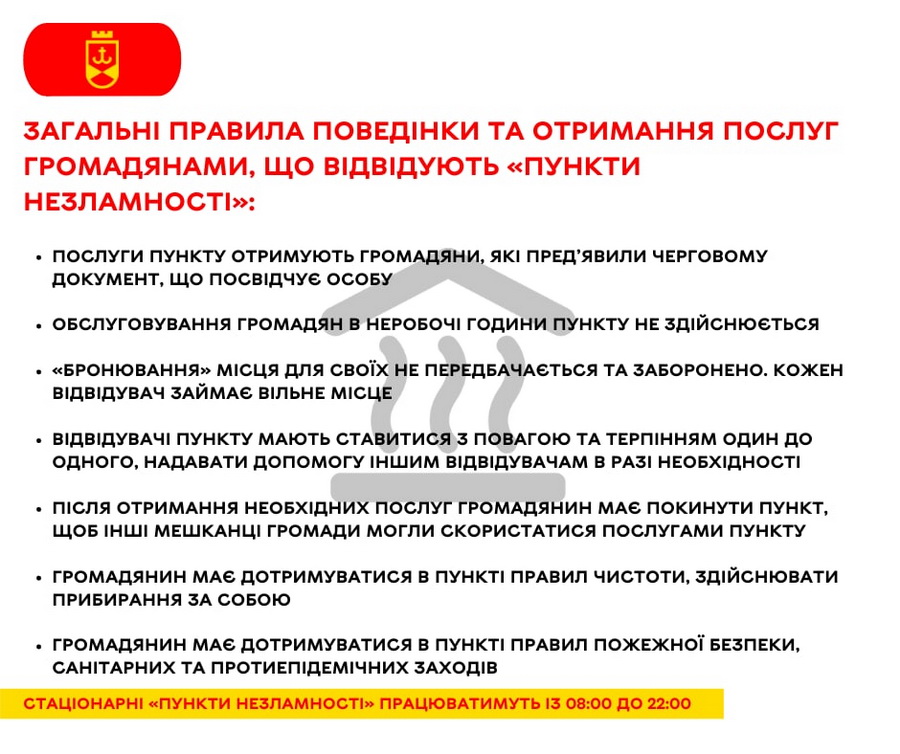 Загальні правила поведінки та отримання послуг громадянами, що користуються послугами «Пункту незламності»: