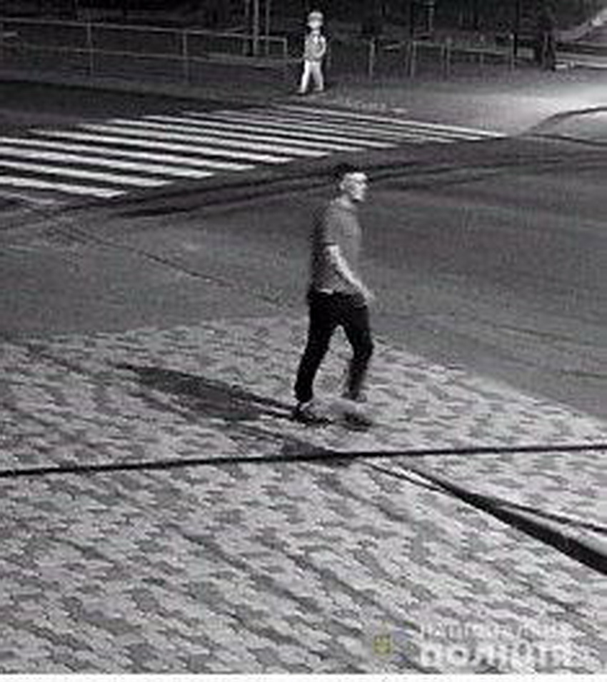 Другий ‒ віком 20-23 років, зріст 180-185 см, худорлявої тілобудови. Був одягнений в чорні спортивні штани, сіру спортивну кофту та темну кепку. При собі мав сумку через плече. Також, із чоловіком перебувала дівчина на вигляд 20 років, зі світлим волоссям, одягнена в сині джинси, білі кросівки та чорну спортивну кофту.