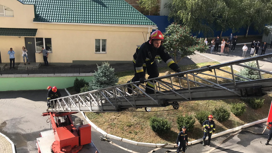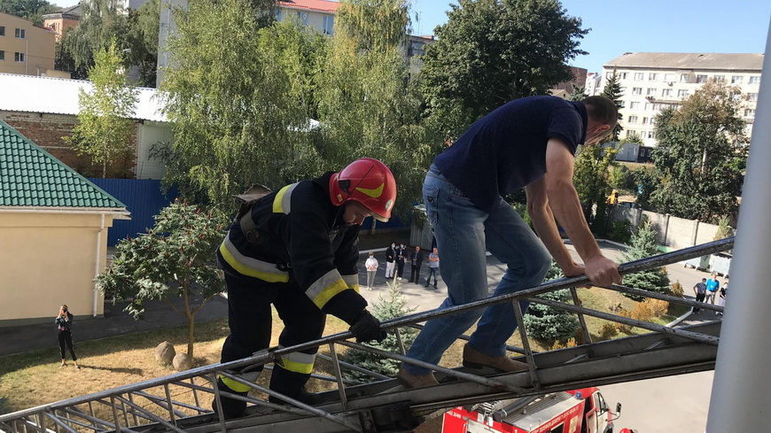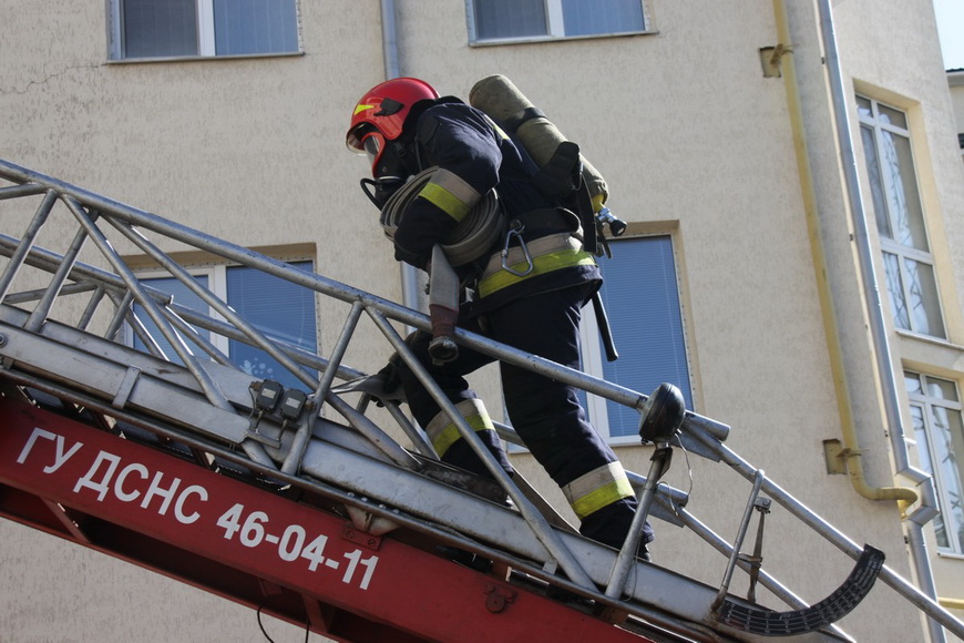 По прибуттю на місце події, надзвичайники в апаратах захисту органів дихання провели розвідку приміщень на випадок виявлення людей, які через сильне задимлення коридорів залишилися «заблокованими» у кабінетах. В одному з останніх бійці ДСНС побачили чоловіка, який сигналізуючи про себе, вже стояв у віконному отворі та очікував на порятунок. За допомогою автодрабини вогнеборці в максимально короткий термін дісталися потерпілого, евакуювали його та негайно вжили заходів щодо локалізації й подальшої ліквідації умовної пожежі.