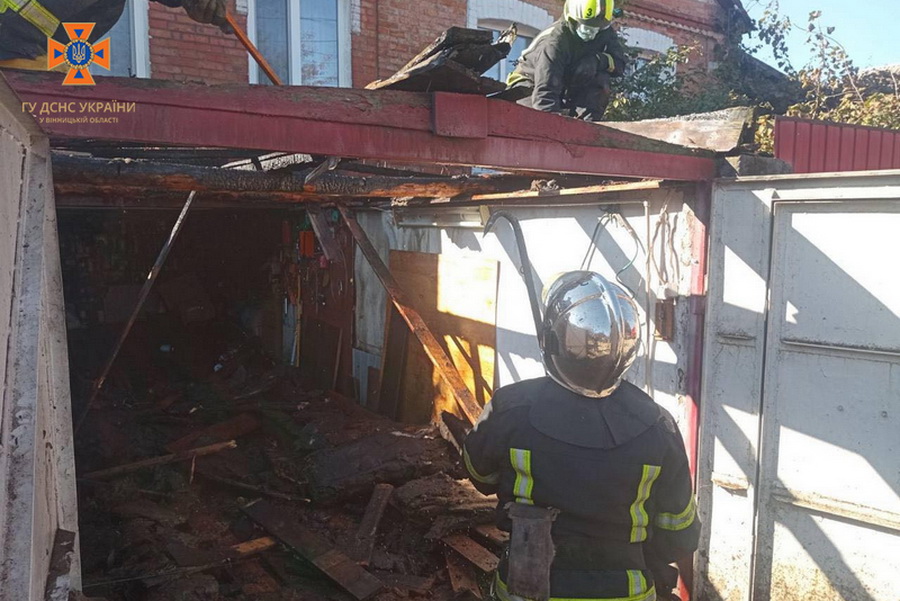 15 жовтня о 13:01 до Служби порятунку «101» надійшло повідомлення про те, що в м.Вінниці горить гараж. Прибувши на місце виклику, рятувальники ліквідували загоряння на площі близько 40 кв.м Вогнем знищено дах будівлі.
