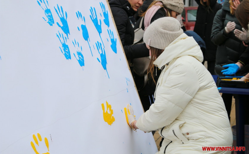 22 січня у Вінниці пройшов флешмоб «Створення прапору з «долонь». Кілька десятків вінницьких студентів прийшли на площу Небесної Сотні та залишили свій відбиток долоньки на полотні. Так на очах створився одинадцятиметровий прапор України.
